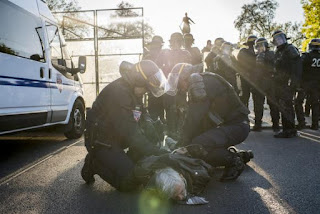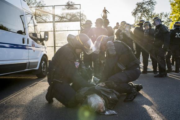 A polícia francesa lançou gás lacrimogêneo em manifestantes na concentração do 1º de maio, Dia do Trabalho, em Paris. Havia nuvens de gás sobre a Place de la Nation, onde jovens usavam máscaras de esqui e atiravam pedras e garrafas em policiais gritando palavras de ordem