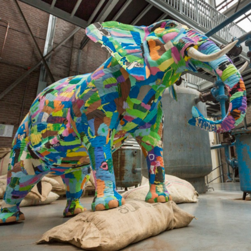 Duas esculturas de grande porte, uma girafa e um elefante, serão expostas ao lado de obras de nove artistas brasileiros que trabalham com resíduos, transformando materiais descartados em arte.