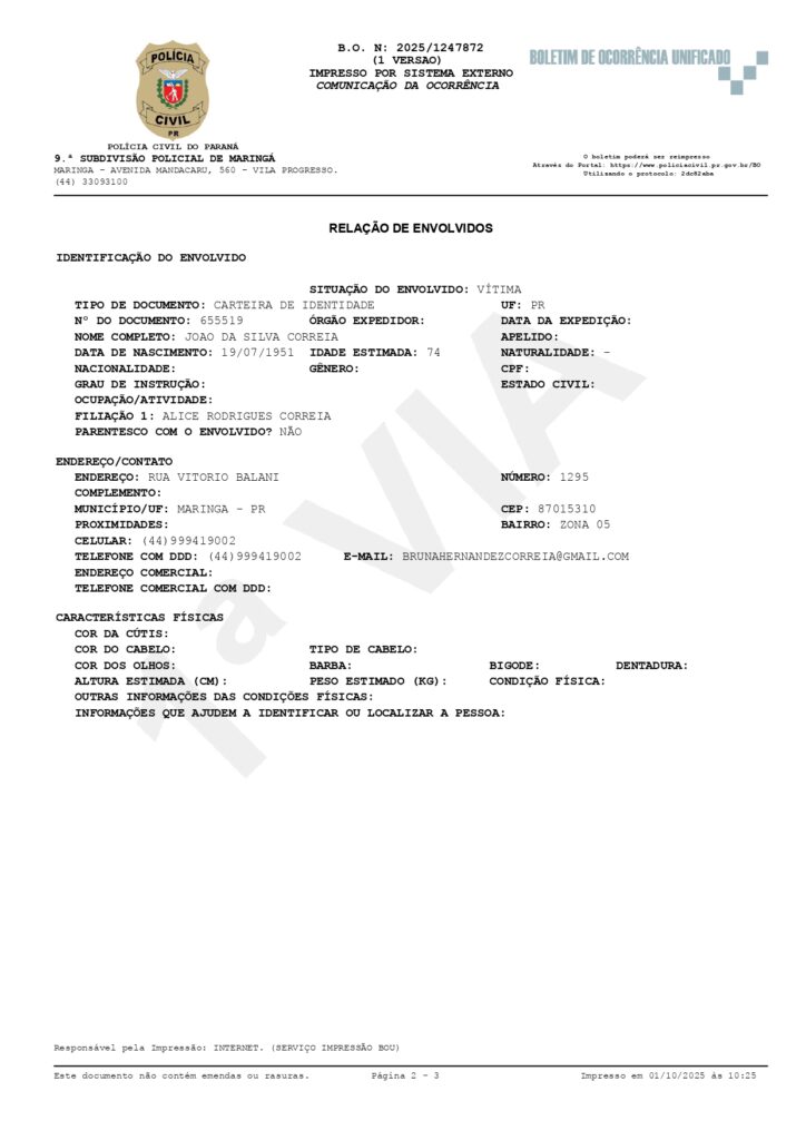 JOÃO DA SILVA CORREIA CPF: 278.056.549-72