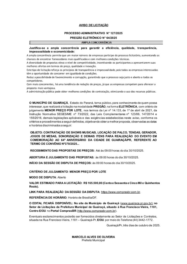 Edital de Pregão Eletrônico de Guairaçá 08/10/2025 Publicidade Legal/ Editais edital guairaçaJornal de MaringáO Diário de Maringápublicação legal