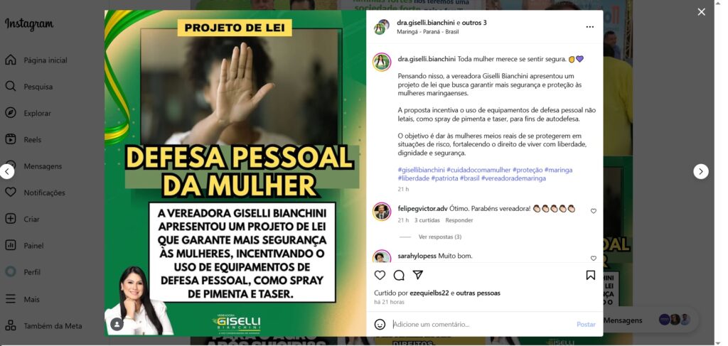 O projeto da vereadora Giselli Bianchini, que propõe sprays de pimenta e tasers para autodefesa feminina, tem boa intenção, mas ultrapassa a competência do legislativo municipal. Equipamentos como esses são controlados por leis federais, e incentivar seu uso no município pode tornar a lei inconstitucional.