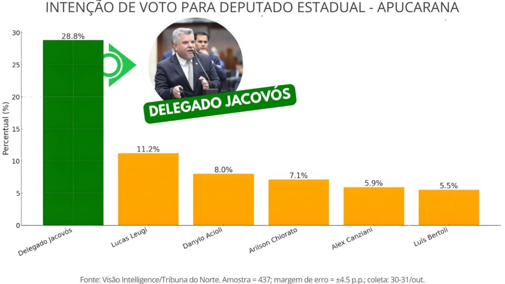 Delegado Jacovós lidera com folga pesquisa para Deputado Estadual em Apucarana