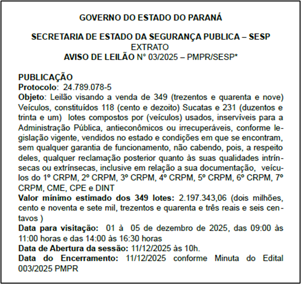 Edital de Aviso de Leilão 13/11/2025 Notícias Jornal de MaringáleilãoO Diário de Maringápublicação legal