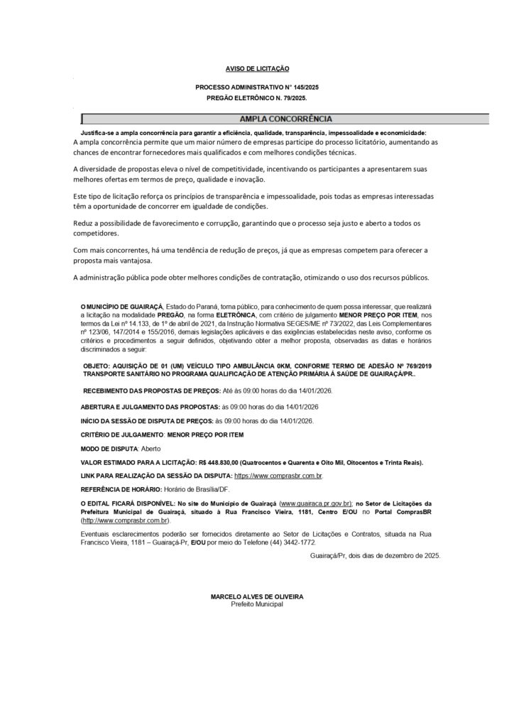 • EDITAL DE AVISO DE LICITAÇÃO