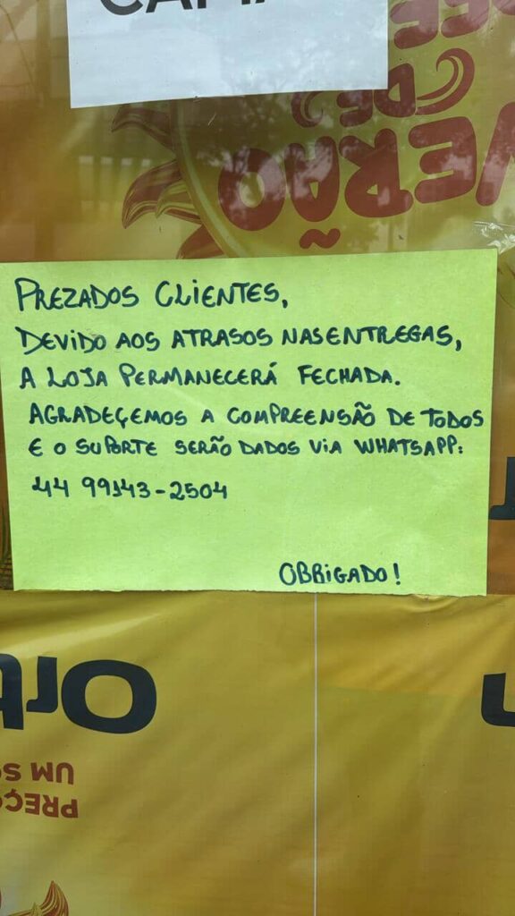 De acordo com os relatos recebidos pela reportagem, o número de contato indicado no local não estaria respondendo. Clientes também afirmam que o telefone fixo não atende e que o perfil da empresa nas redes sociais foi desativado nos últimos dias.