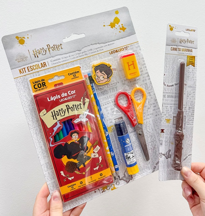 Para os que gostariam de estudar em Hogwarts e são apaixonados por Harry Potter, algumas das opções são: Caderno Fichário Universitário 1 matéria Harry Potter com 96 folhas (de R$ 44,10 por R$ 34,90), Kit Escolar Lápis de Cor 12 cores Harry Potter Leo & Leo (de R$ 54,00 por R$ 34,90), Caneta Esferográfica em formato de varinha Harry Potter Leo & Leo (de R$ 69,30 por R$ 34,90), além de outros itens do bruxo mais querido.
