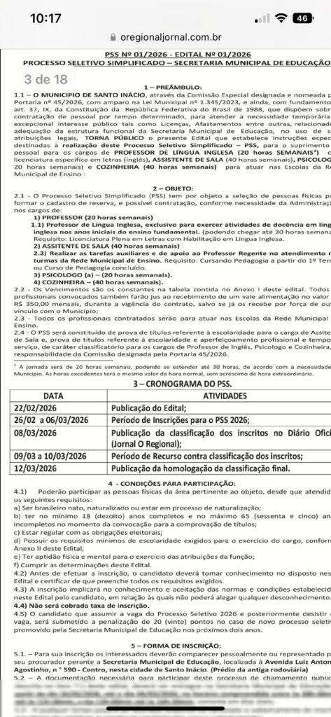 - Um novo PSS teria sido aberto;