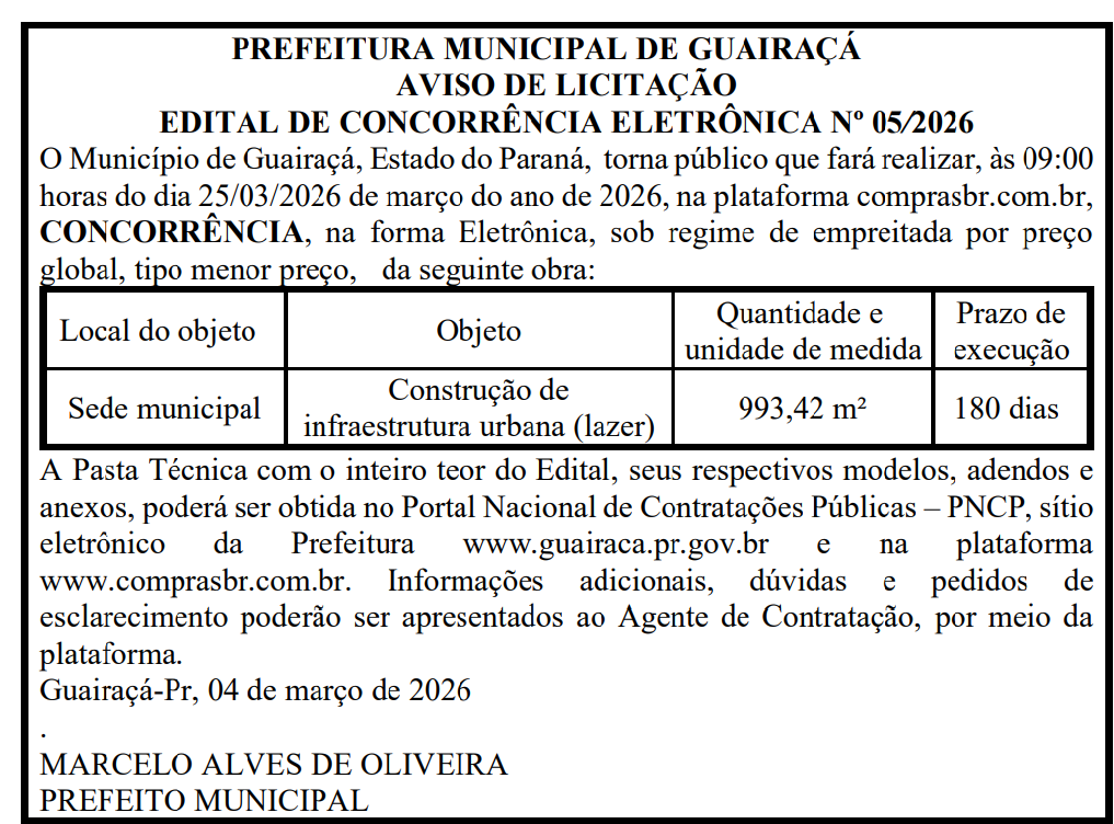 EditalGuairaçáJornal de MaringáO Diário de Maringápublicação legal