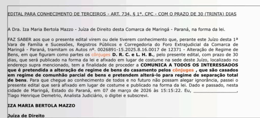 Edital para conhecimento de Terceiros 07/04/2026 Publicidade Legal/ Editais Escaneie o QR Code para verificar a autenticidade da publicação https://odiariodemaringa.com.br/category/publicidade-legal-editais Campo Mourão revoga pregão eletrônico EditalO diáriod e Maringápublicação legal